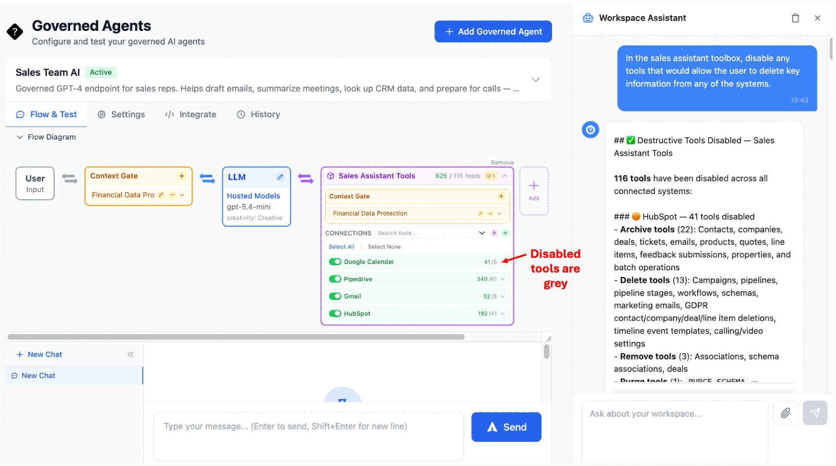 A sales assistant that can look up data but can't modify records is a very different risk profile from one that can send emails on behalf of your reps.